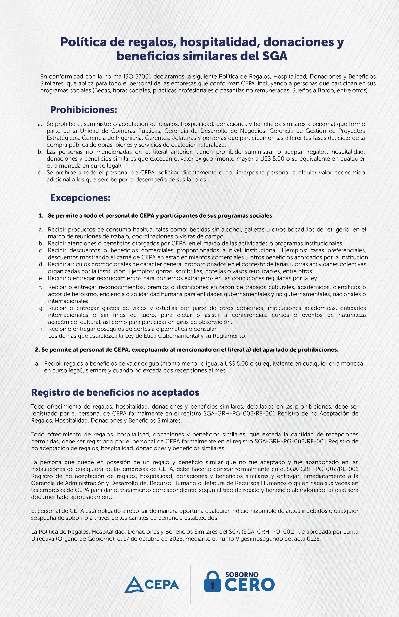 Política de regalos, hospitalidad, donaciones y beneficios similares del SGA